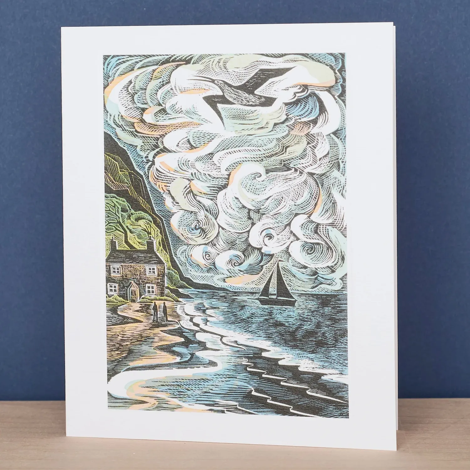 Angela Harding curlew cry greetings card. A linocut and screenprint illustration. Blank inside.