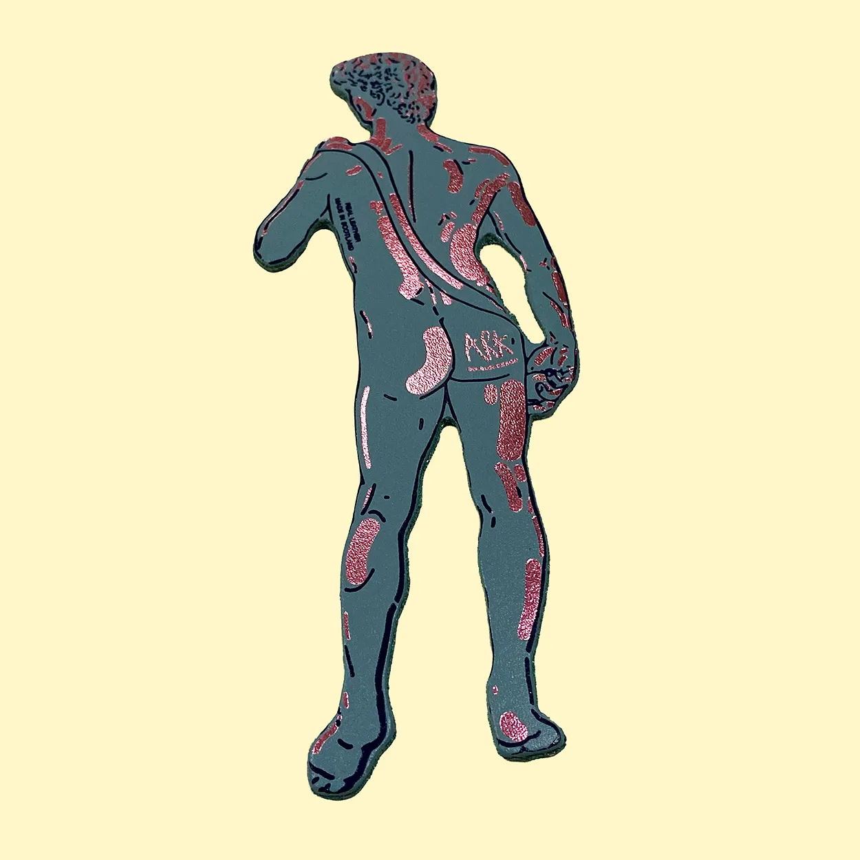 Ark leather bookmark, David, based on ancient sculptures this bookmark is perfect for those who read the classics. Finished in heritage blue with metallic pink highlighting.