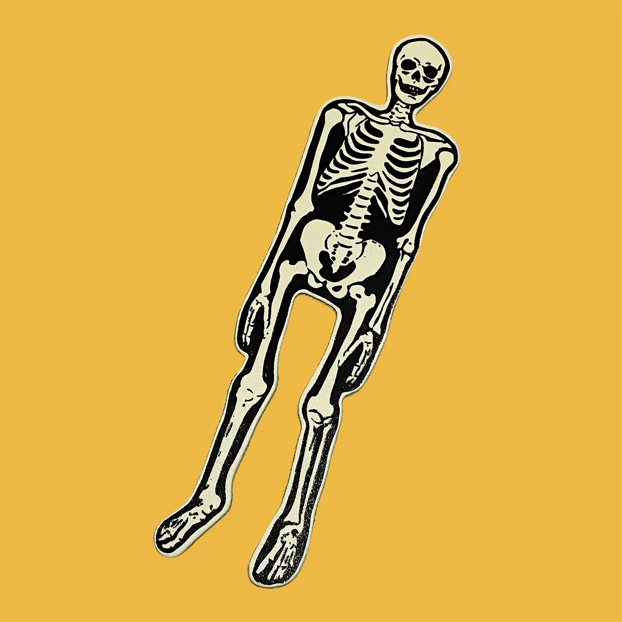Ark skeleton leather bookmark printed in cream and black with the words you see right through me on the back.