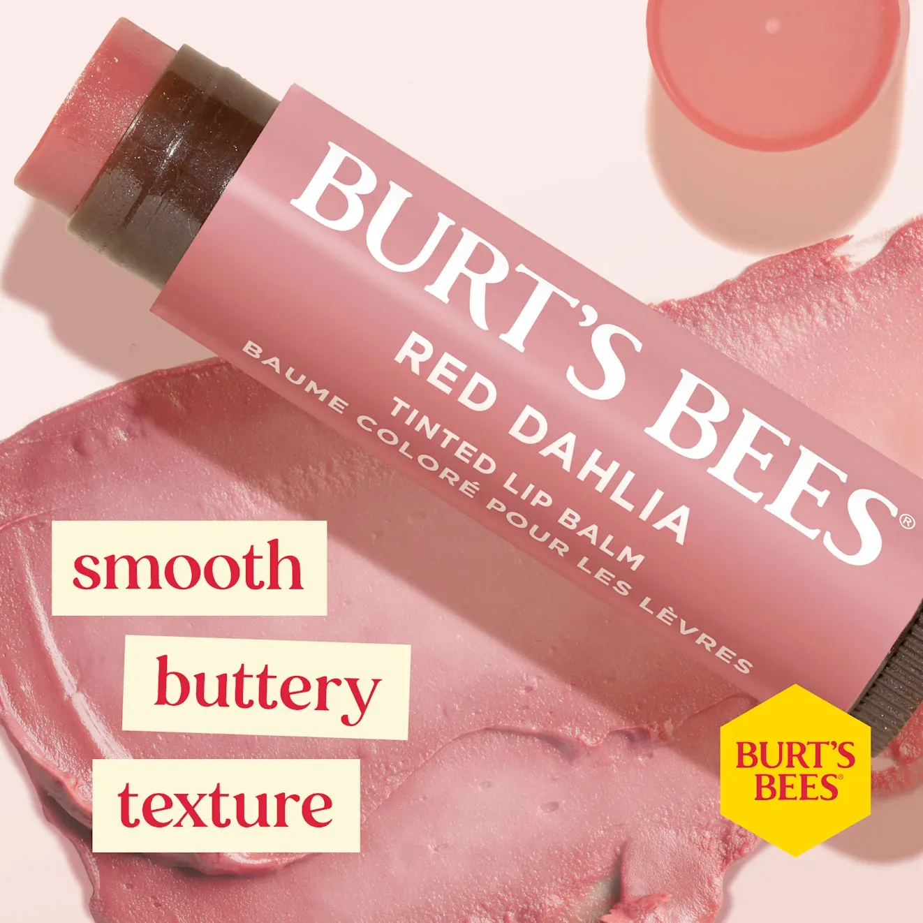 Burt's Bees tinted lip balm, red dahlia, a classic beeswax balm with a hint of delicate mauve. Use to protect and norish your lips against the rigours of the weather.