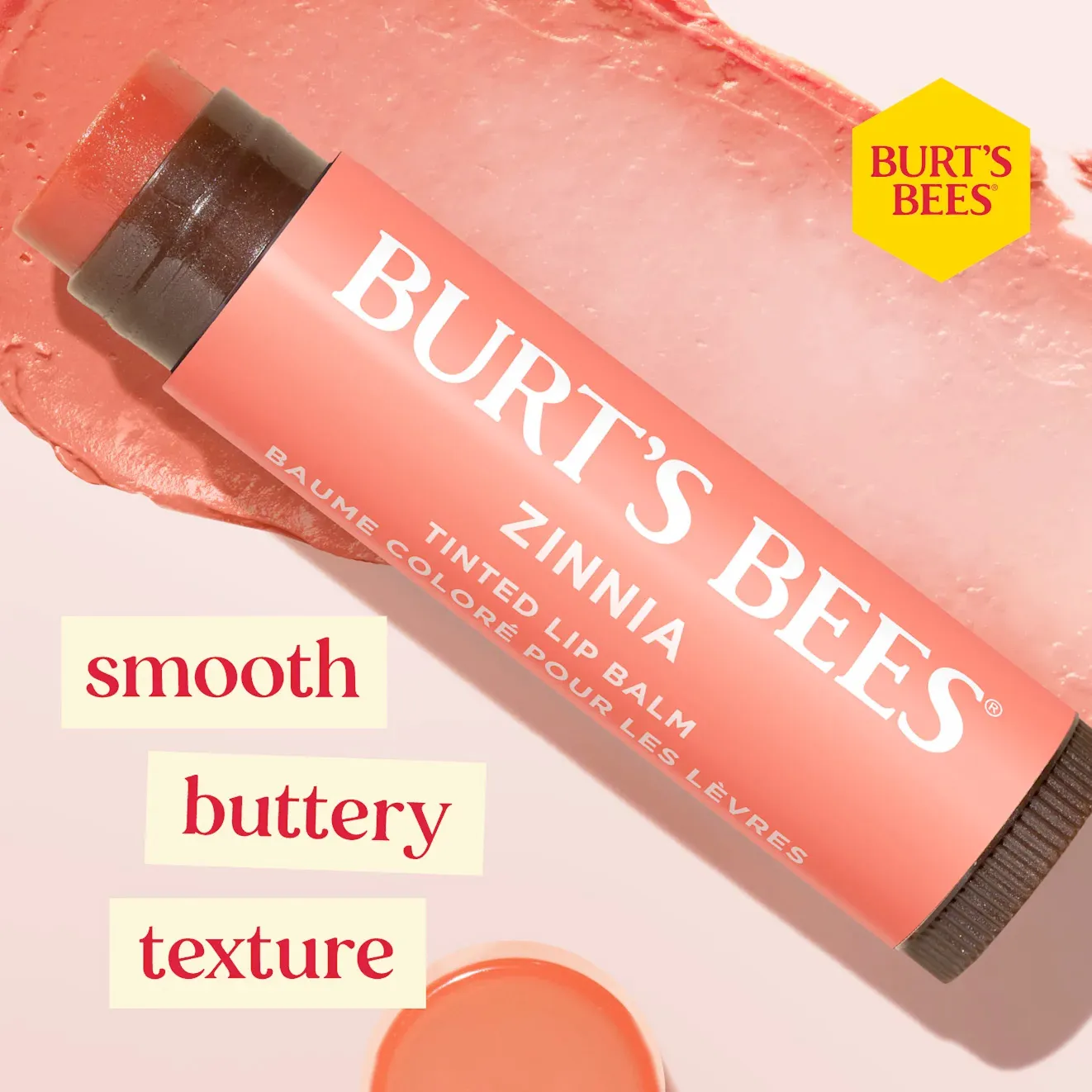 Burt's Bees tinted lip balm, zinnia, a soft shade of peach enhances this natural beeswax balm to add a hint of colour to your lips alongside the protection provided by a good beeswax lip balm.