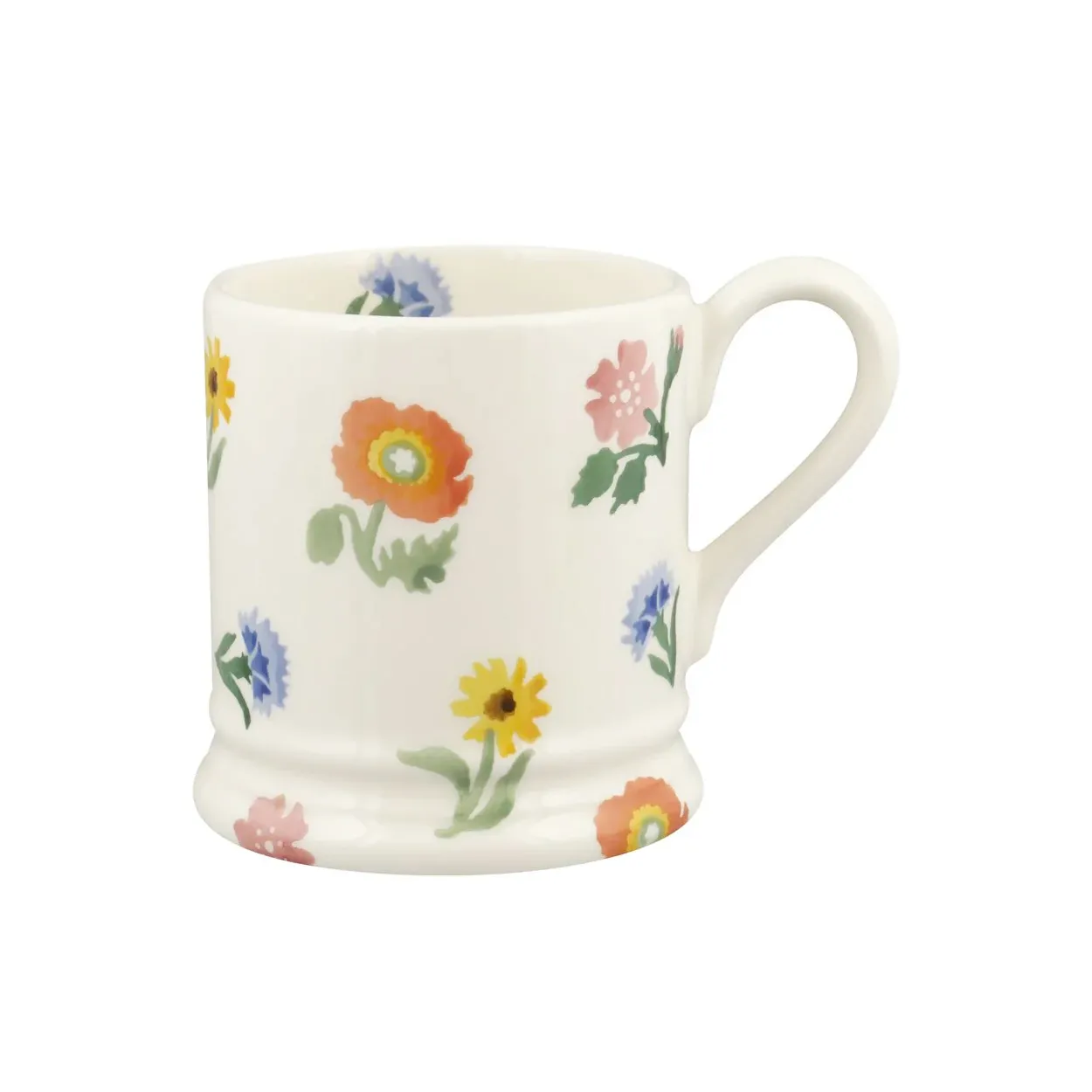 Emma Bridgewater half pint pottery mug hand decorated in the poppies and pinks pattern, tiny floral sprigs cover this pretty mug.