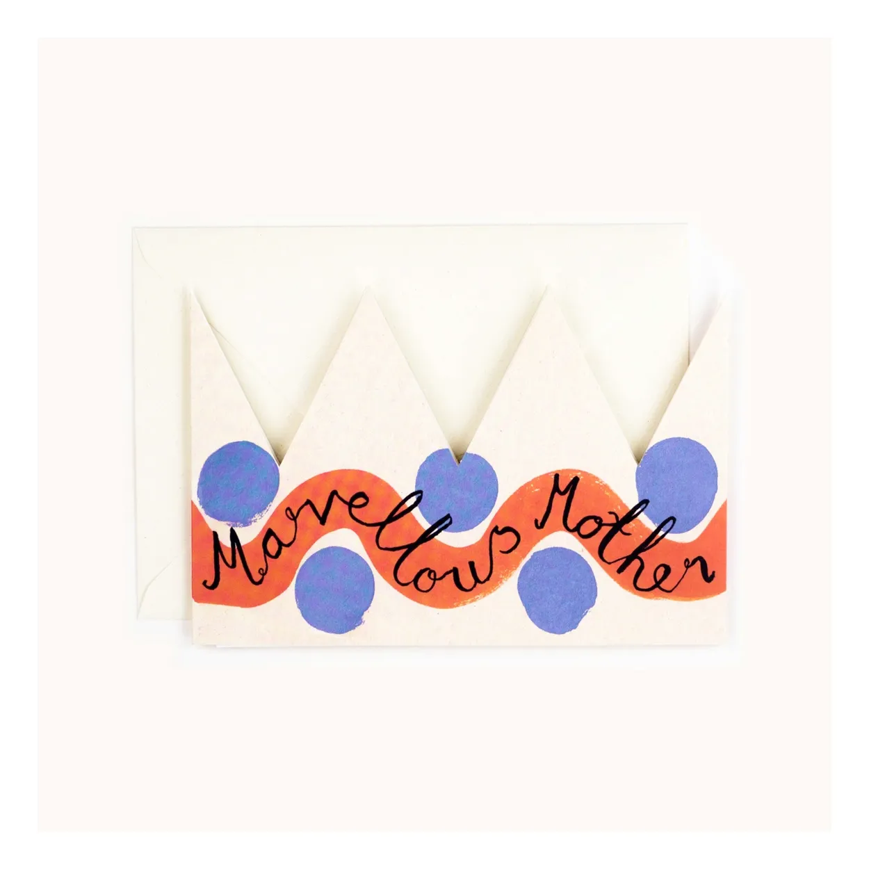 Hadley marvellous mother party hat greetings card. A crown shaped card with a tab and slot to turn this fun card in to a wearable party hat.