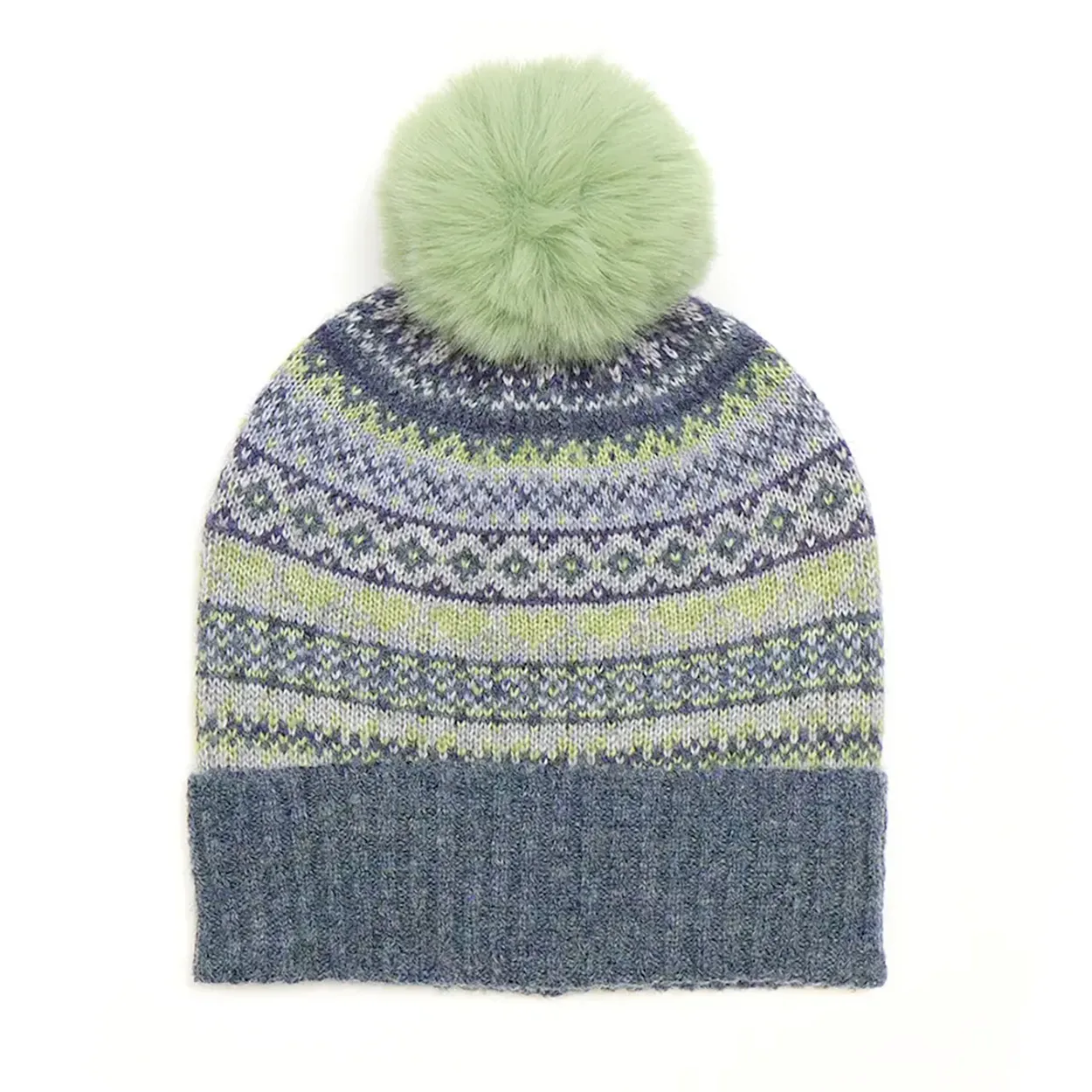 Peace of Mind Blue and Sage Fair Isle Bobble Hat