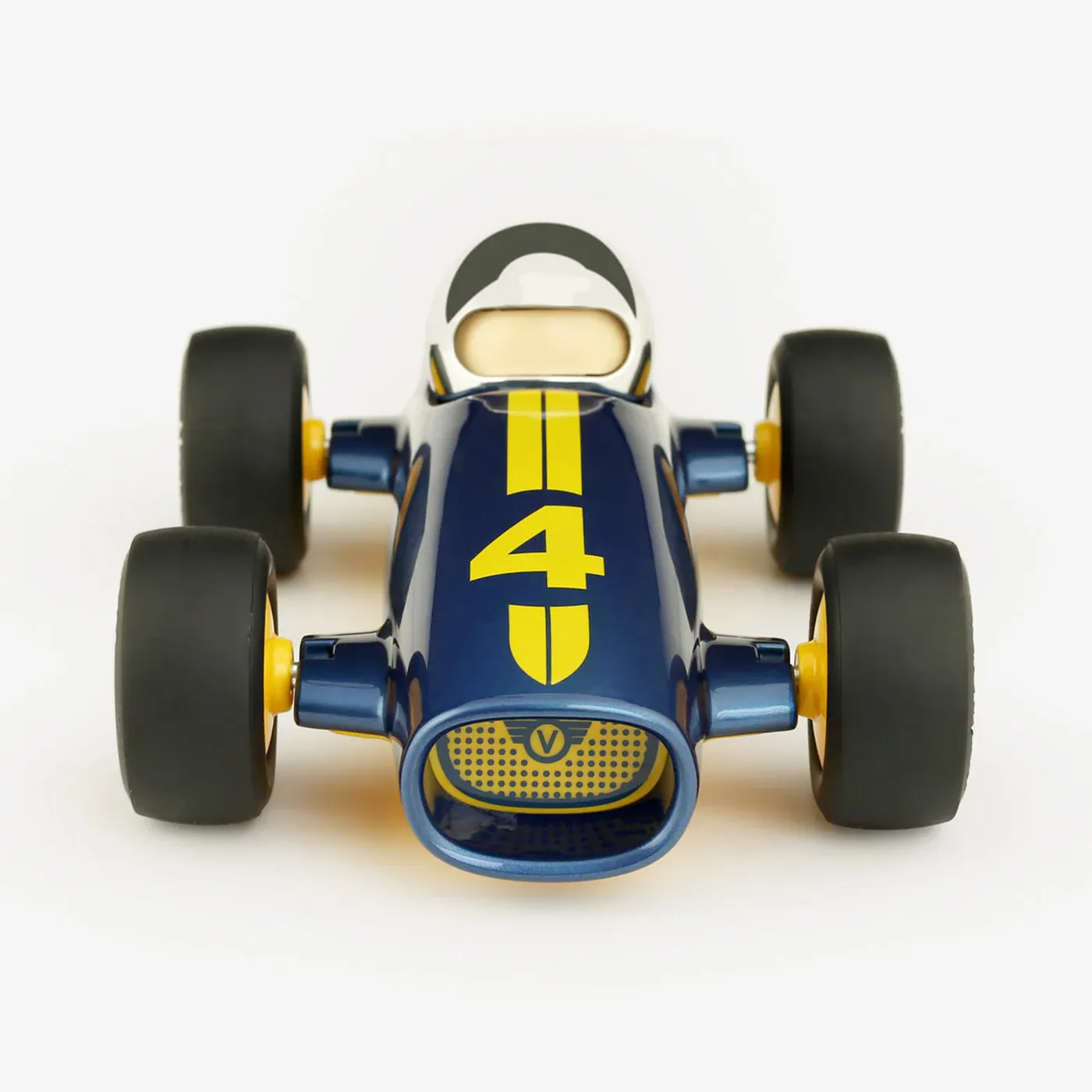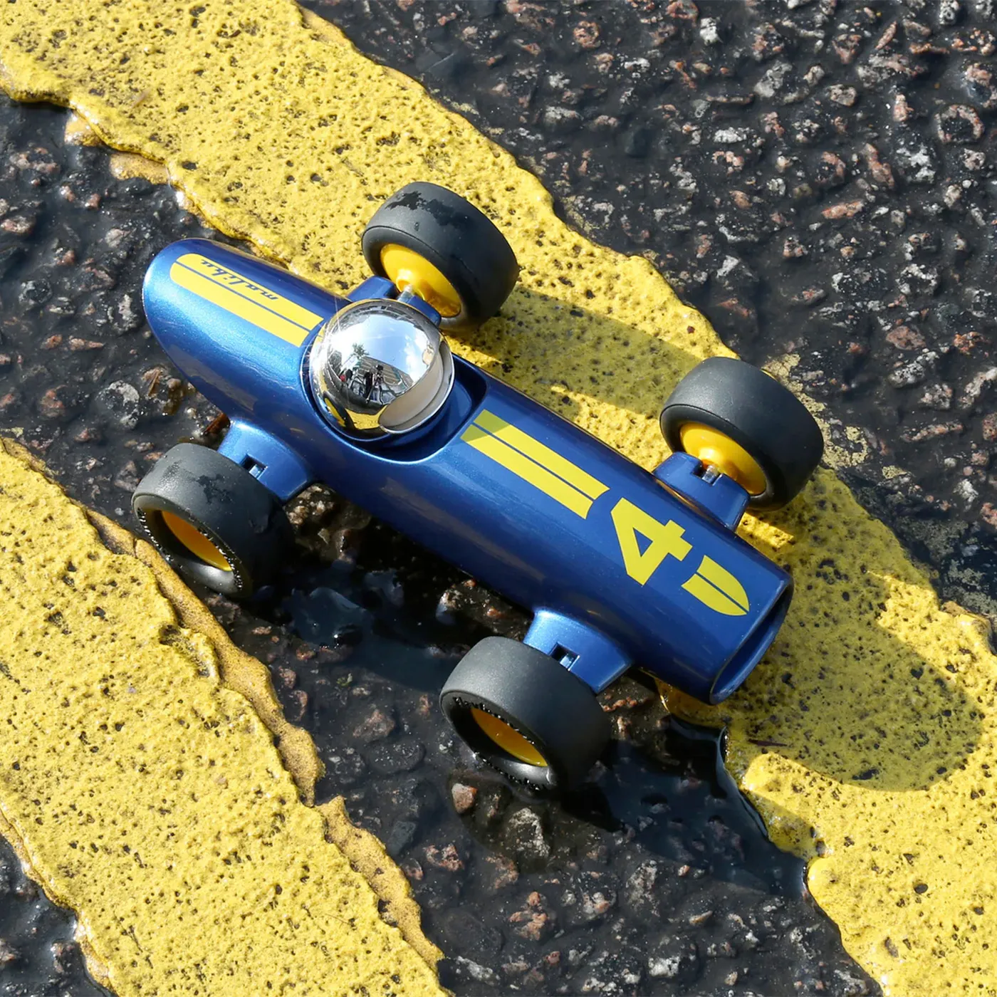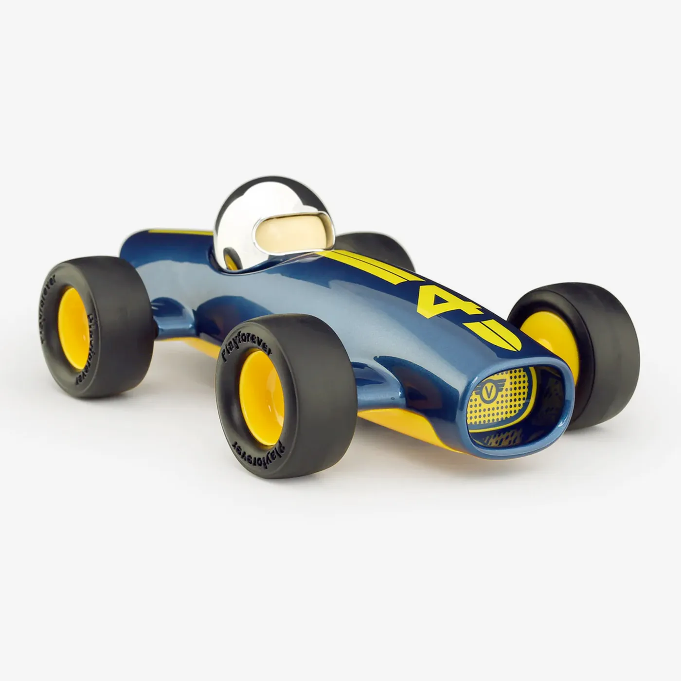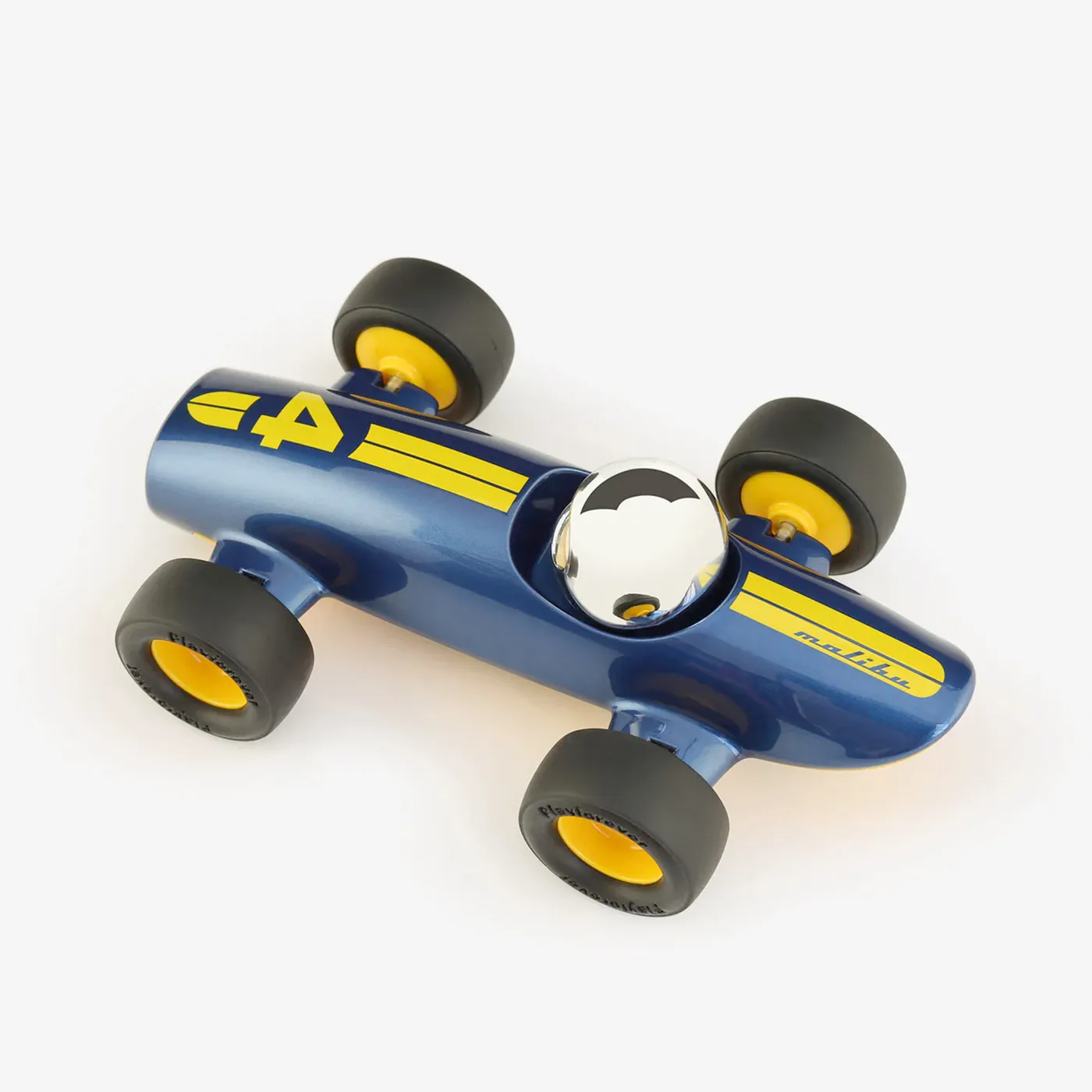 Playforever Malibu Lucas. Drawing inspiration from the Italian formula 1 Grand Prix cars of the 1920s and 1930s the sleek open wheel design of this striking blue and yellow race car evokes memories of a bygone era. Supplied in branded box.