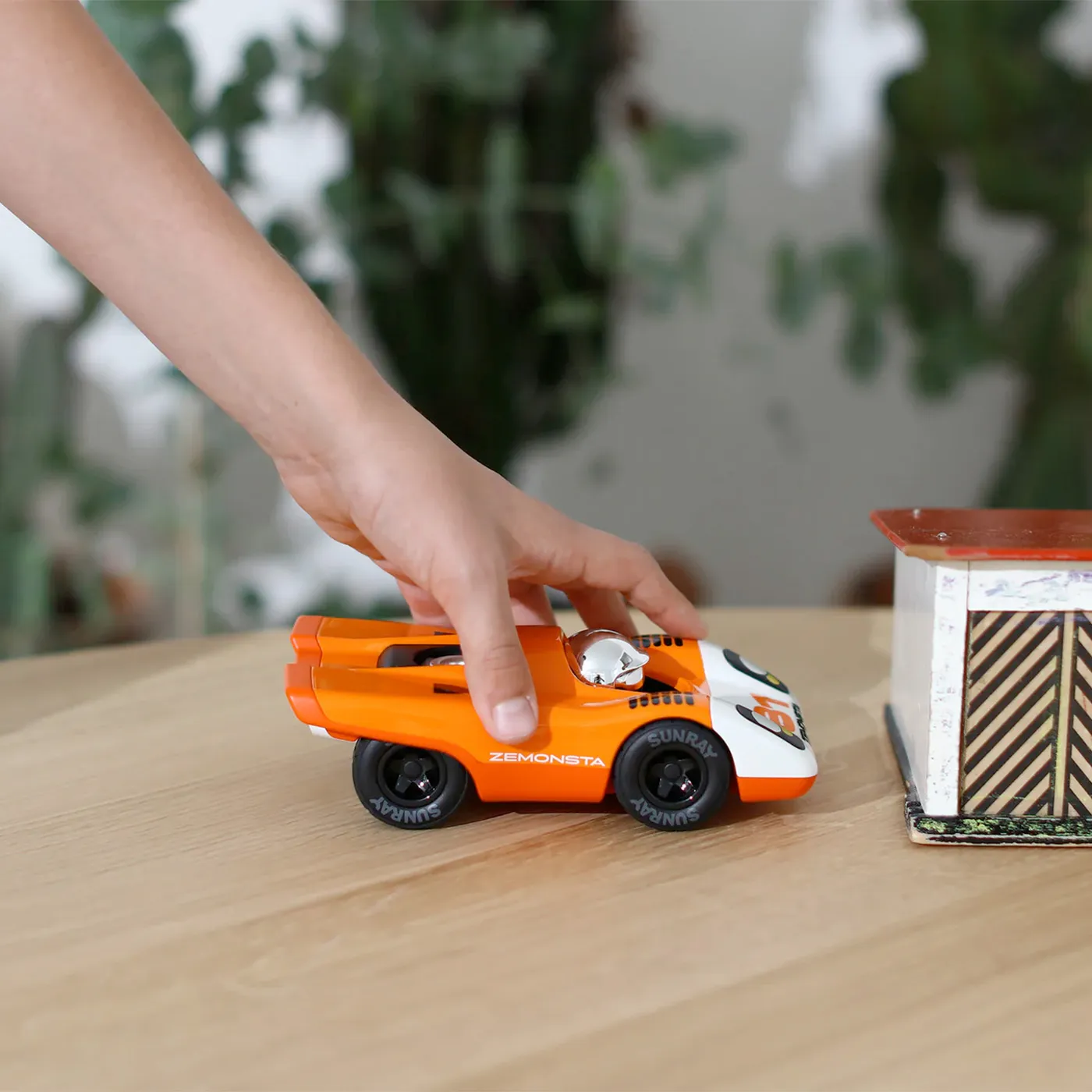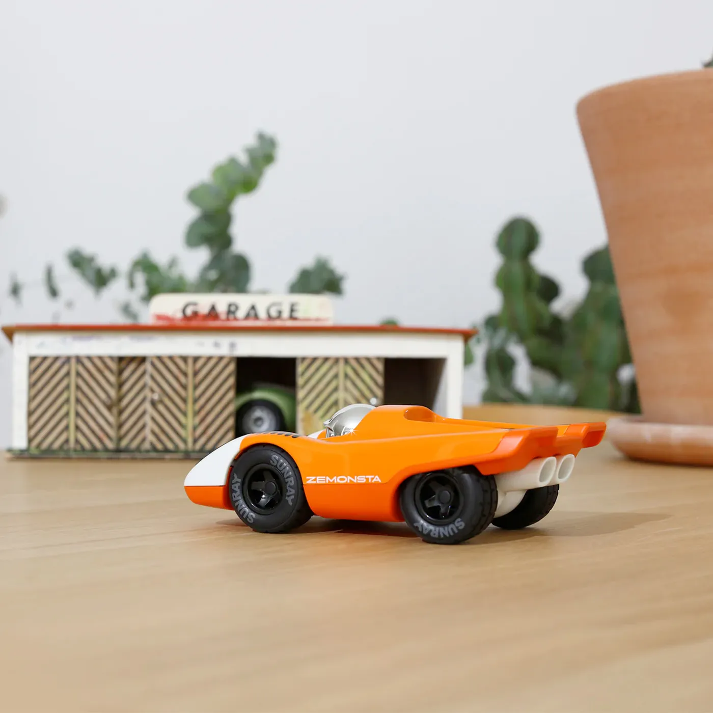 Playforever Zemonstsa Egon, this stunning toy car is inspired by the famous racing Porsche 917 from the 1970s and is finished in a bold bright orange livery. Supplied in branded box.